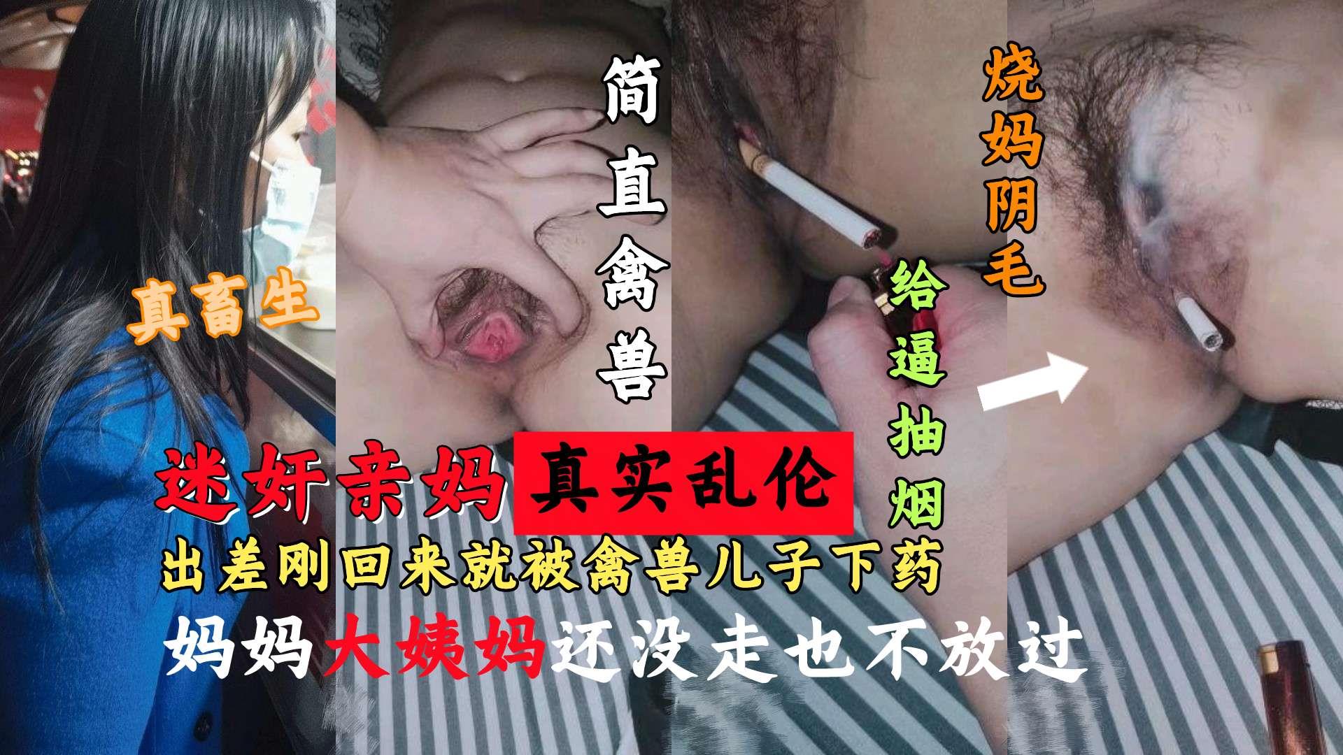 妈妈出差刚回来就被畜生儿子下药迷奸肆意玩弄给逼抽烟烧妈逼毛还内射