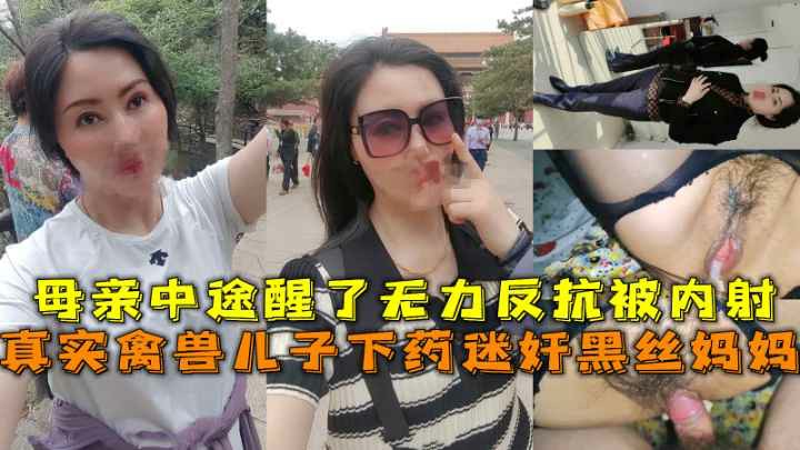 真实禽兽儿子下药迷奸黑丝妈妈母亲中途醒来无力反抗被内射