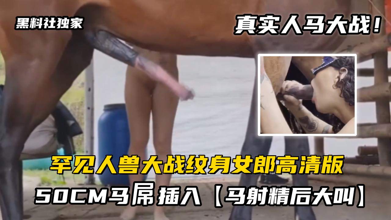 【人马大战】罕见人兽大战纹身女郎被50CM马屌插入,马射精后大叫!高清版