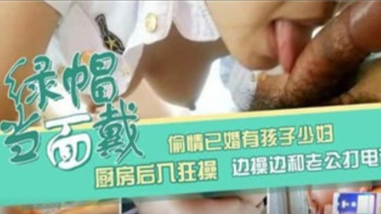 偷情已婚有孩子少妇,厨房后入狂草,边操边和老公打电话